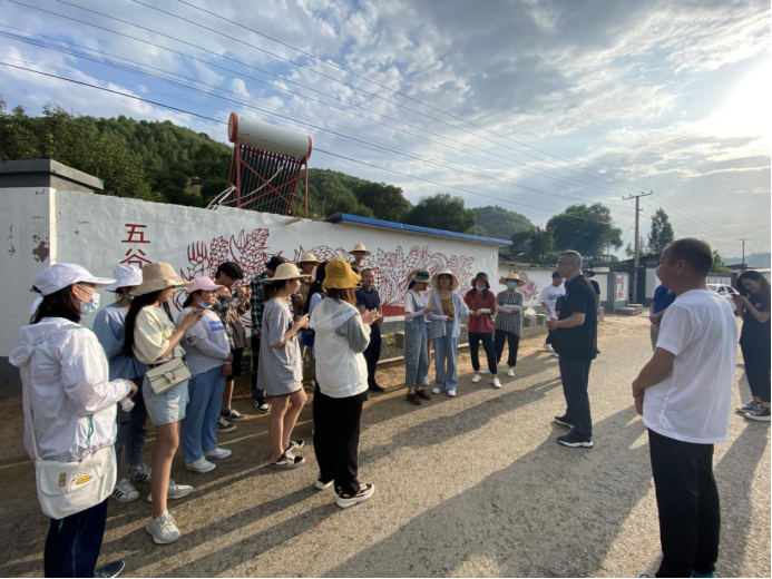 此次甘泉艺术扶贫实践教学的负责人于泳老师对学生的实践项目以及成果进行了汇报,桥镇乡人民政府甄国栋主任对陕甘苏区政府阎家湾旧址以及桥镇当地红色文化进行了详细的介绍。一行人先后参观了艺术与设计学院视觉传达专业的师生们在屈沟坪村、仙神庙坪、阎家湾村近2000平米的墙绘创作,对此次的艺术扶贫项目的实践成果表示高度认可与赞赏,同时表示希望学生能深切感受红色文化精神,锻炼吃苦耐劳的精神,培养顽强的意志力以及保持积极的创作热情。