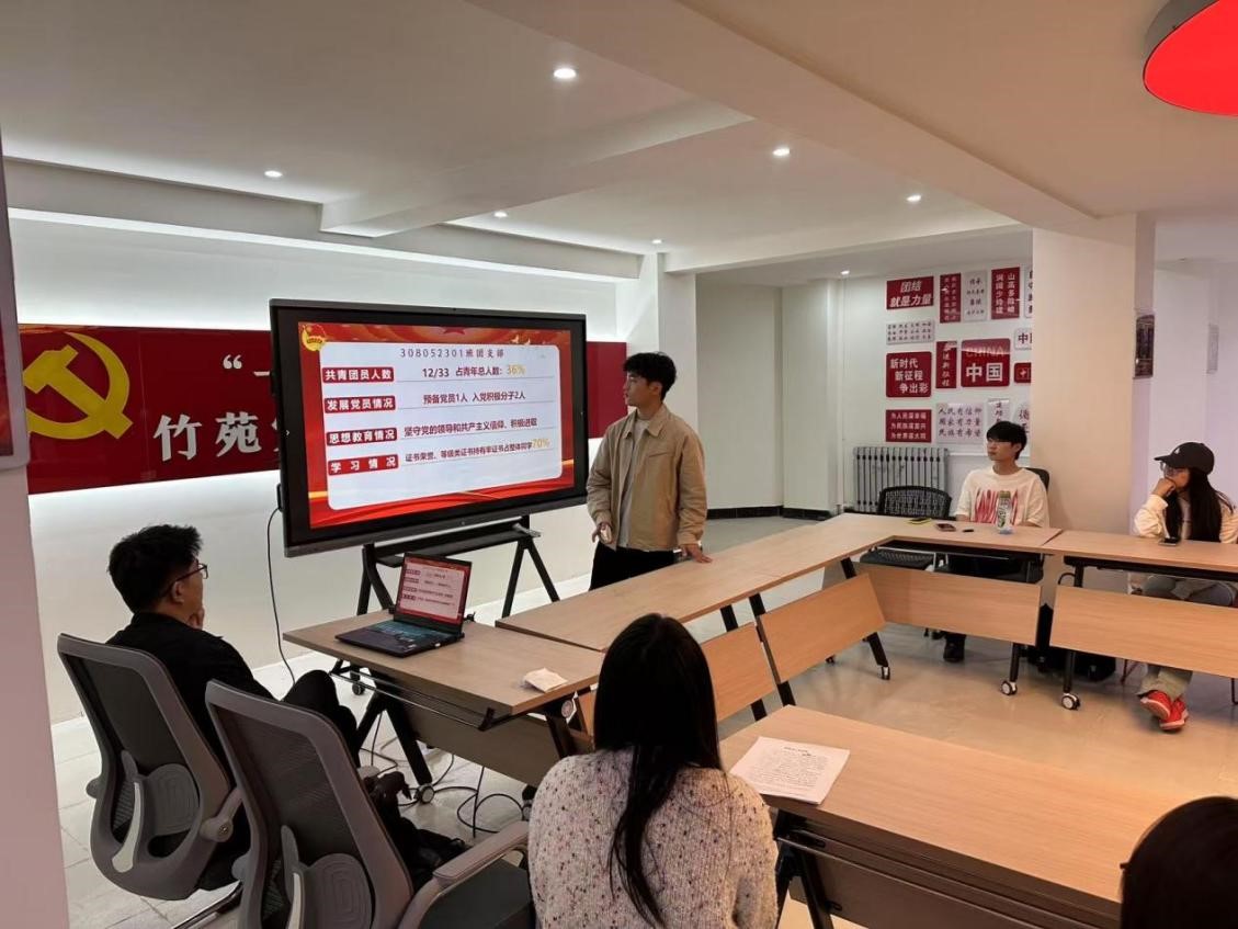 答辩现场,各位团支书以昂扬的精神风貌和专业素养,生动展示了基层团支部建设的创新成果。他们通过开展主题鲜明、形式多样的团日活动,将思想政治教育融入青年生活;以志愿服务为载体,用实际行动践行初心使命;更以独具特色的品牌活动,有效凝聚了青年力量。其中,赵梦琦团支书带领的支部实现青年大学习参与率连续多期保持100%的优异成绩,团支书曹中豪精心策划的"青春心向党"主题团日活动获得师生好评,这些典型案例成为答辩会上最引人注目的亮点,充分展现了基层团组织的活力与创造力。