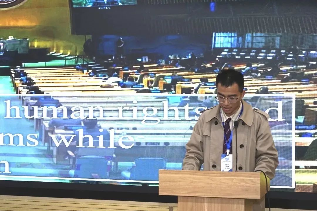 主席团成员陈墨铮来自空军工程大学为我们这次大会中的表现进行总结。他表示本次大会中UNGA3委员会的代表们表现出色,大家用实际行动诠释了模拟联合国的精神和意义。通过这次大会,他相信代表们不仅提升了自己的能力,也增进了对国际事务的了解和认识。希望大家能够将在本次大会中所学到的知识和经验运用到今后的学习和生活中,继续关注国际问题,为推动世界的和平与发展贡献自己的力量 。