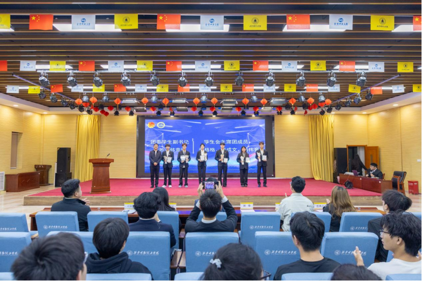 青春逢盛世,奋斗正当时。为进一步加强团学组织建设,激发青年学生干部的活力与担当,9月29日,学院隆重举办第七届团委和学生会干部换届大会。学院党委书记肖千春、校团委副书记刘雄、院团委书记王佳龙、学生党支部书记王旭光、辅导员程方元以及第六届学生会主席团成员与全体团学成员齐聚一堂,共同见证这一传承责任与梦想的时刻。