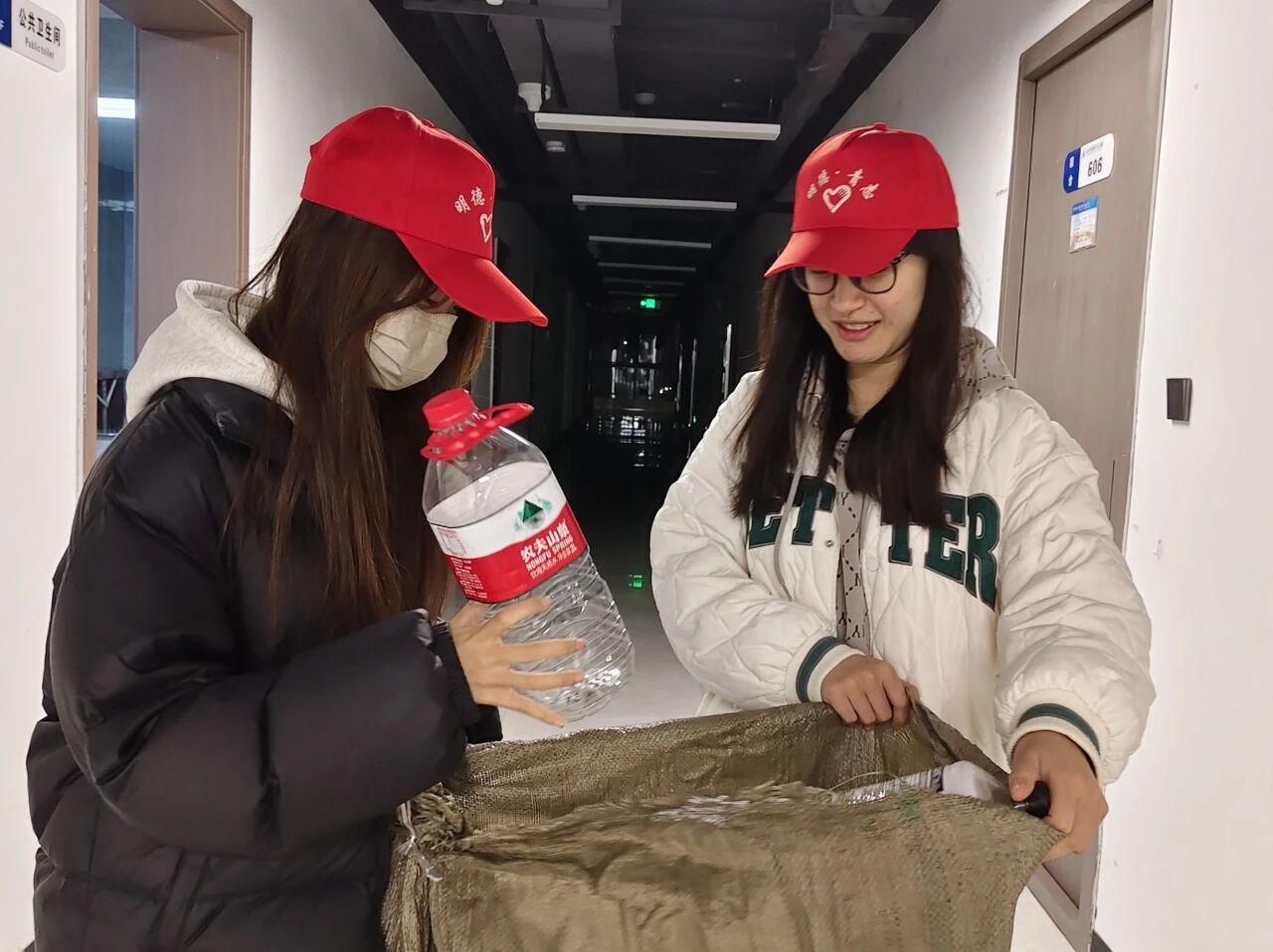 活动伊始,各部门负责人带领志愿者迅速行动,按照提前划分的区域前往各宿舍开展集瓶工作。志愿者们手持收纳袋,耐心与同学们沟通活动目的,不仅高效收集了各类空瓶,更传递了环保的公益理念,得到了同学们的积极响应与热情支持。