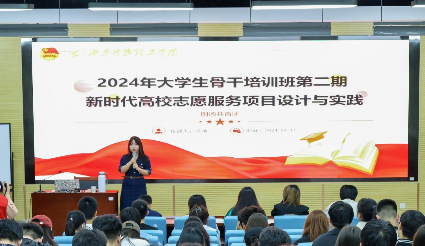 为深入学习贯彻习近平新时代中国特色社会主义思想和党的二十大精神,引领大学生骨干提高对志愿服务的理解和实践能力,提升学生组织力、凝聚力及社会责任感,学校团委于2024年4月11日在建德楼202报告厅开展了2024年春季学期大学生骨干培训班第二期。此期培训由艺术与设计学院团委书记兰艳主讲,主题为《新时代高校志愿服务项目设计与实践》,校团委副书记乔建、校院团学骨干近200名师生参加此次培训。