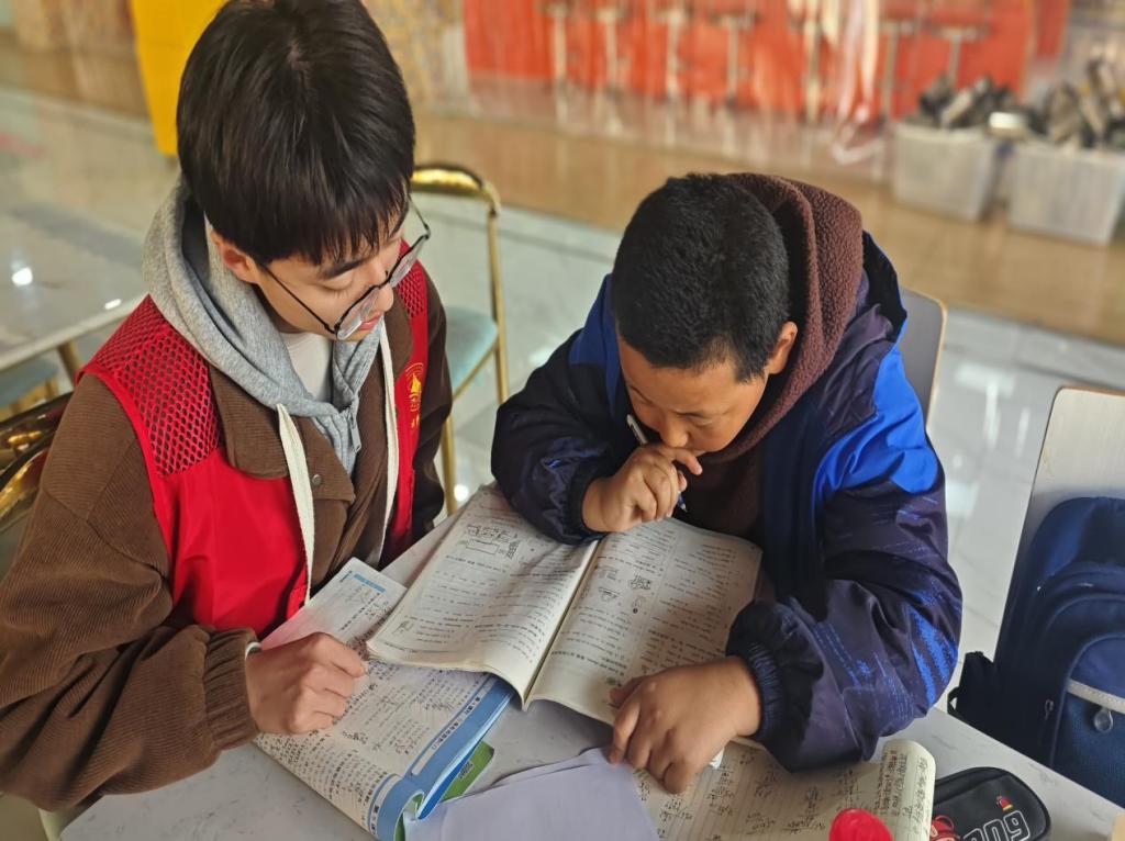 2024年12月8日,青年志愿者服务团于食堂二楼开展了第六次“沣河行动”校内义务家教活动,志愿者们化身点点星光,汇聚成一束束希望之光,怀揣着关怀与热情,奔赴这场爱心满溢的育人之旅,为求知的校园再度添上一抹温暖亮色。