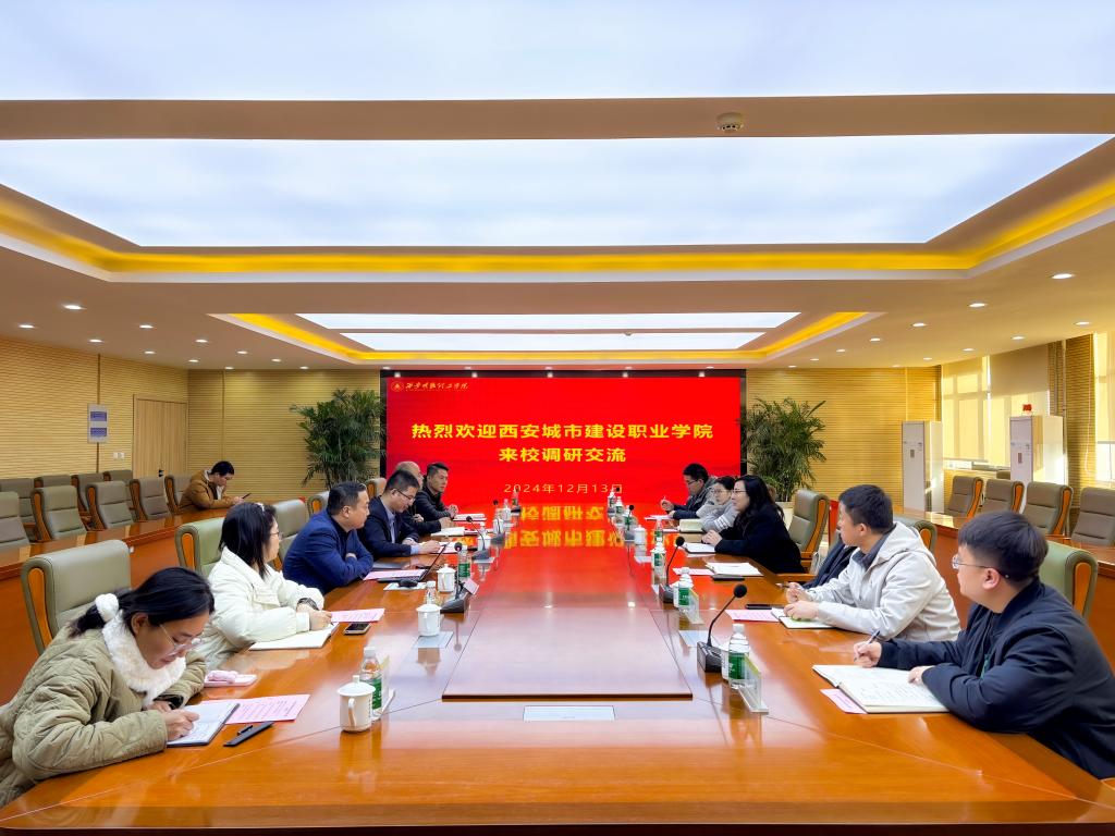 12月13日上午,西安城市建设职业学院党委副书记郭海燕、副院长邵思飞一行来beat365调研交流。学校党委副书记、副校长刘星,党委学生工作部、教务处、招生就业中心、网络信息化中心相关负责同志参加此次交流活动。