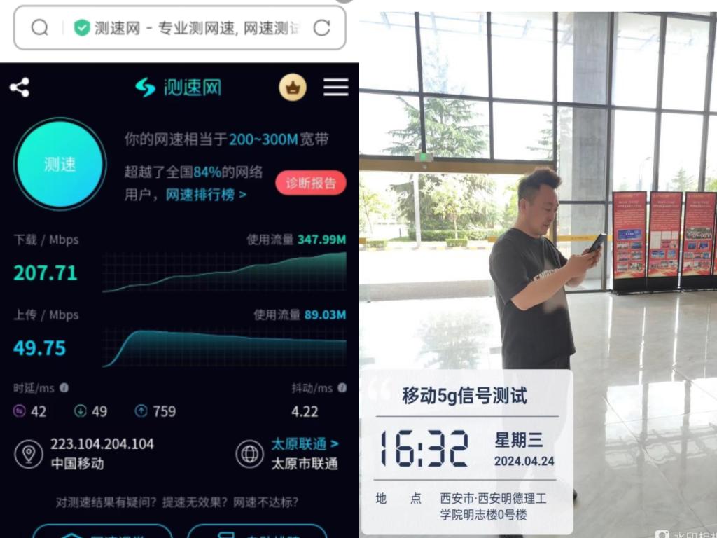 在beat3655G网络信号开通后,网络信息化中心工作人员对开通区域的网络信号进行了实地测试,测试结果显示下载速率可达每秒207.71Mbps,上行速率可达每秒49.75Mbps,已达到项目建设目标。