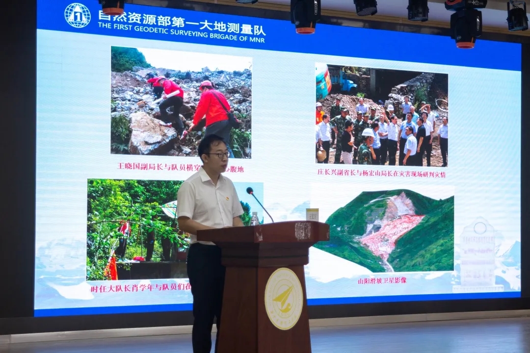 王宏宇以《不忘初心·砥砺前行 传承国测一大队精神》为题,讲述了国测一大队响应党的号召、服务祖国需要,用脚步、汗水乃至生命丈量祖国壮美河山,为国防建设、经济社会发展和科学研究做出卓越功勋,用忠诚与奉献创造一个又一个奇迹的感人事迹。报告聚焦国测一大队七测珠峰的壮举,通过8848.13、8844.43、8848.86三组数字,深情回忆了大队于1975年、2005年和2020年三测珠峰中发生的感人肺腑的故事。整场报告充满爱国情怀,感人肺腑、催人奋进,一个个震撼心灵的故事、一句句情真意切的话语、一幅幅感人至深的图片,令现场师生接受了一次精神的洗礼,接受了一场生动的党史学习教育和国家版图知识教育。