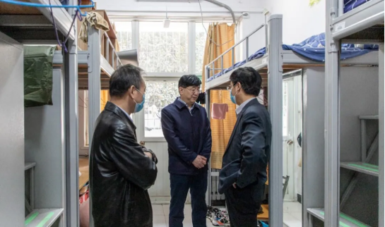 为贯彻落实疫情防控工作安排部署,切实做好学校春季学期开学校园安全和疫情防控等各项工作,3月5日下午,省委教育工委委员、省教育厅副厅长朱晓渭、财务处处长杨盛涛、陕西科技大学审计处处长付红娟、西安工业大学财务处副处长雷健、陕西结核病防治所王芳一行来到学校进行开学督查。校长杨健君、党委书记阎东明等校领导及相关职能部门负责人陪同检查并参加座谈。