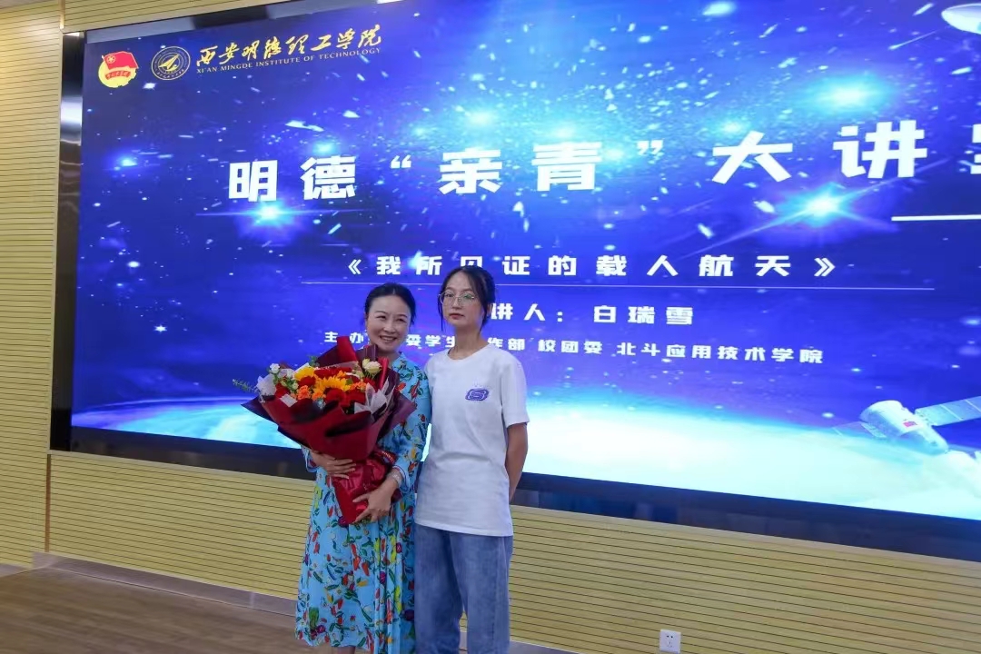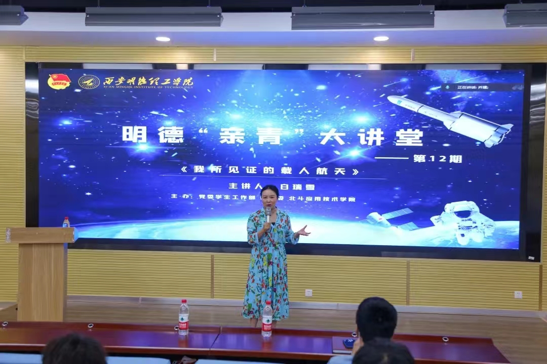 6月9日,明德“亲青大讲堂”12期在学校建德楼202报告厅举行。爱太空科技董事长,原新华社著名航天、军事记者,白瑞雪带来主题为“我所见证的载人航天”报告会。学校党委副书记董昊、党委学生工作部、校团委、北斗应用技术学院、智能制造与控制技术学院相关负责人及来自beat365和西北工业大学、西安邮电大学等5所高校的航空航天爱好者近千人在线上聆听了报告会,报告会由童杨梓主持。