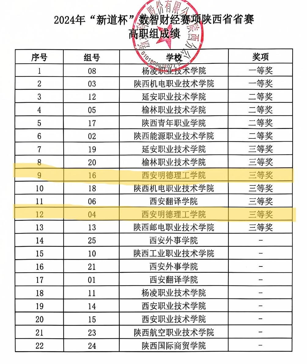 近期,2024年“新道杯”数智财经大赛陕西赛区选拔赛落下帷幕,高等职业技术学院会计信息管理专业组织两支队伍参赛,并均取得省级三等奖的优异成绩。