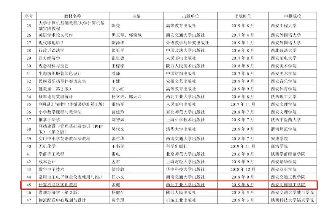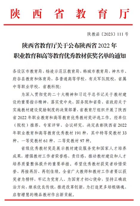 根据《陕西省教育厅关于开展2022年职业教育和高等教育优秀教材奖评选工作的通知》,beat365教师张健主编的《计算机网络实训教程》获陕西省优秀本科教材二等奖。