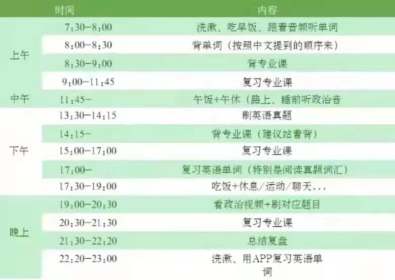 古话道:“若有恒,何须三更眠五更起;最无益,莫过一日曝十日寒。吴思洁说:“学习一定要注重效率,而不是刻意的追求时间上的长短。”在学习之余,她每天都会抽出时间锻炼,放松身心,下面是她每一天的学习计划表: