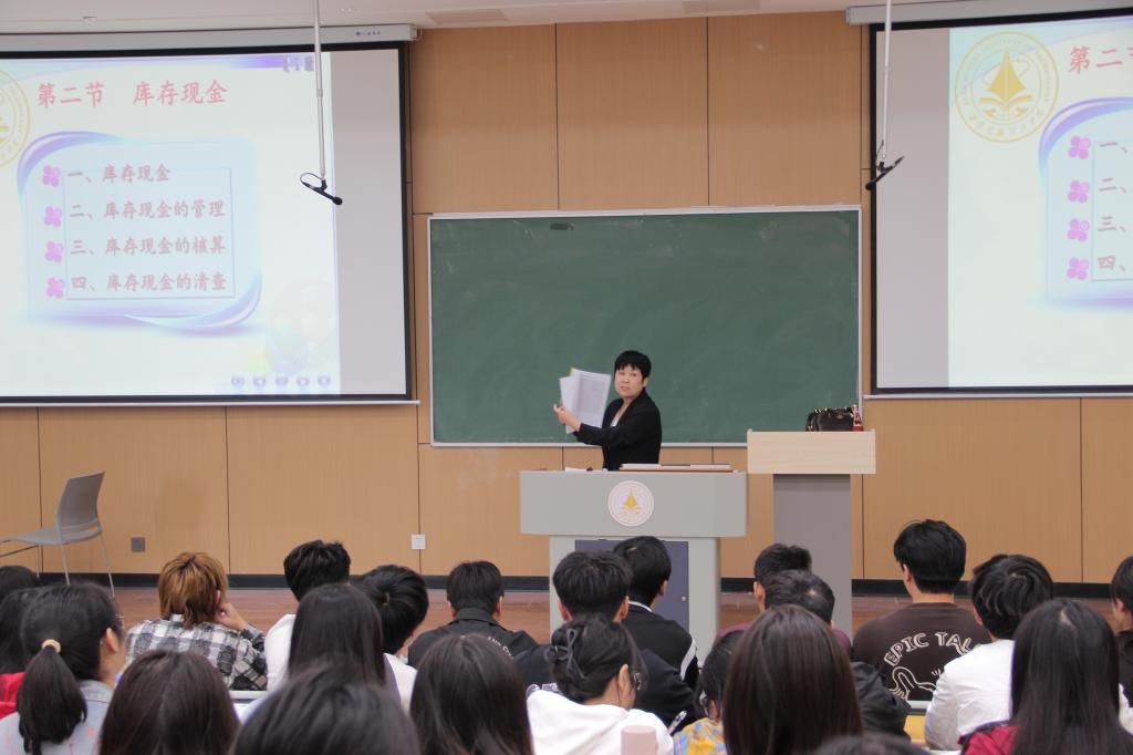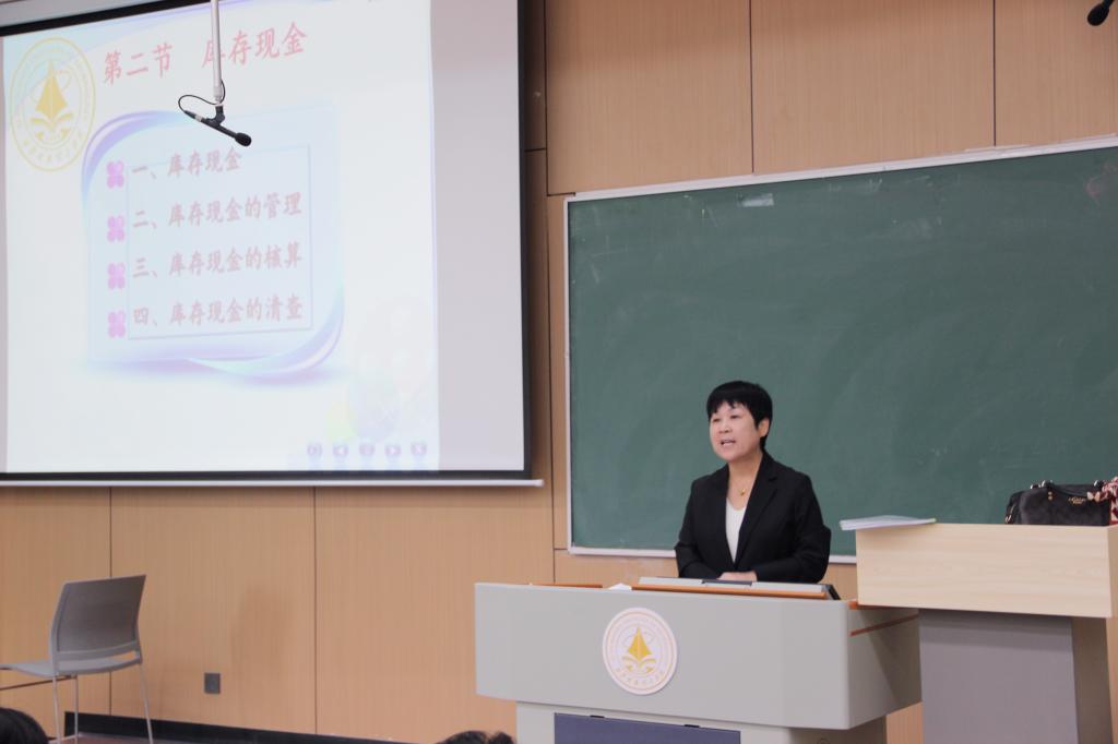 马焱教授作为经济与管理学院的资深教师,在公开课上她首先给大家展示了她的“五大件”,给学生回顾了前一节课所讲的重点内容,接着告诉学生按照教学计划本节课应完成的教学任务是第二章货币资金的库存现金。在库存现金的管理与核算知识讲解中,马教授以学生为中心,运用企业资金运动规律和全球财务舞弊案例引入,通过严谨的逻辑梳理和幽默的语言表述把学生带入了本块知识的解码情境里,并结合“30号会计准则”和学科发展动态,有效的拓展了教学内容,巧妙的渗透了课程思政内涵,最后通过“一题一练”的形式对本节课必须掌握的知识点进行回顾。课堂上,马焱教授的公开课板书主副分明,教学态度严谨,教学环节完整,教学方法能契合学生特点,激发和调动学生的参与热情,体现了知识、能力和素养的三维合一,得到了听课老师们的一致好评。