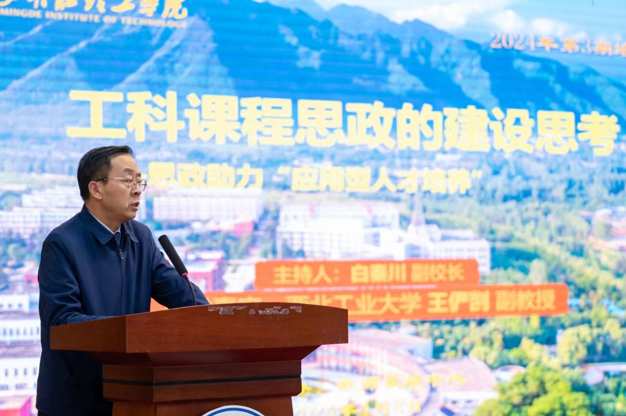 白秦川副校长对王俨剀副教授的到来表示热烈欢迎!他简要介绍了培训的目的,鼓励师生积极研讨交流学习,共同探讨课程思政建设,不断推进课程思政建设深层次发展,打造学生喜闻乐见的思政课程。