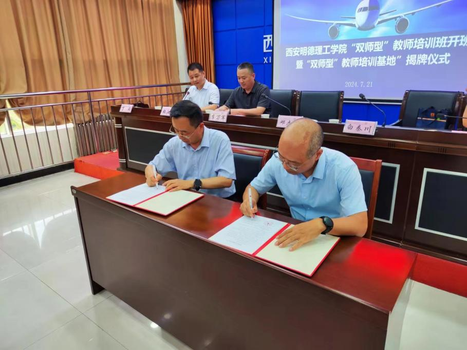 随后,beat365vip官网登录入口副校长白秦川与西安航空职业技术学院副校长邓志博共同签署了合作框架协议,标志着两校在“双师型”教师培养领域的合作正式拉开帷幕。两位副校长共同为beat365vip官网登录入口“双师型”教师培训基地揭牌。“双师型”教师培训基地的成立,将为beat365vip官网登录入口的教师搭建一个集理论学习、实践操作、科研创新于一体的综合性培训平台,有力推动学校“双师型”教师队伍建设。