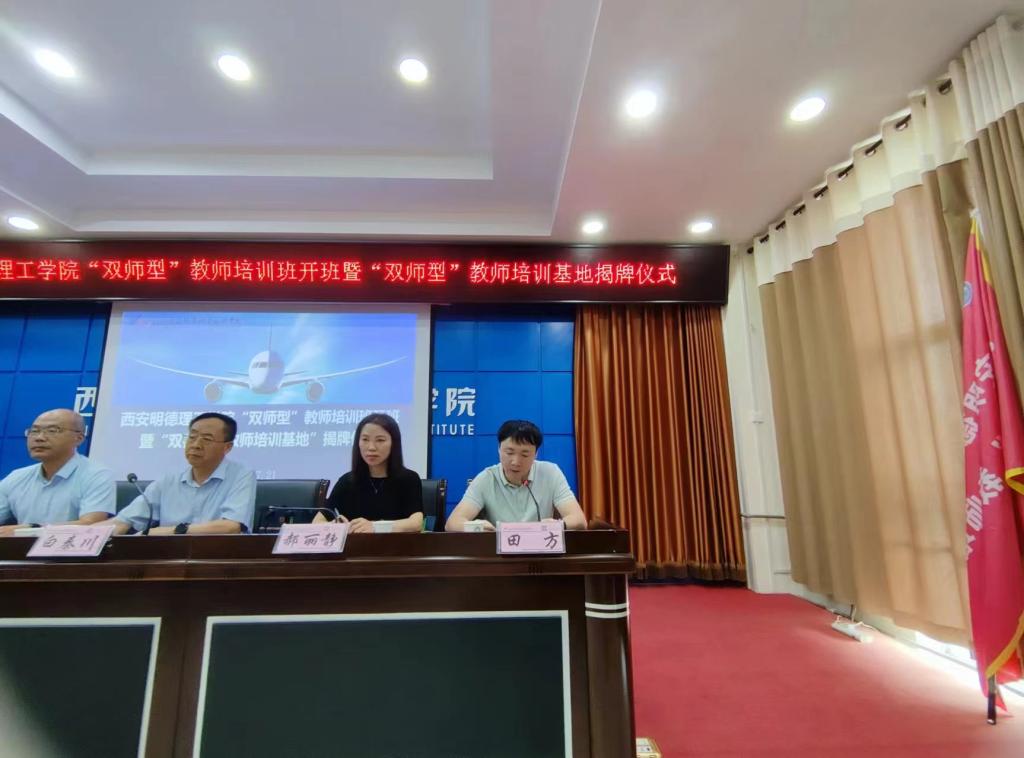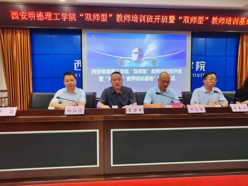 2024年7月21日,beat365vip官网登录入口“双师型”教师培训班开班式暨“双师型”教师培训基地签约揭牌仪式在西安航空职业技术学院南校区行政楼报告厅举行。beat365vip官网登录入口党委副书记、副校长白秦川、信息工程学院副院长张伟岗、智能制造与控制技术学院副院长李建勇、人力资源处副处长康抗、教师发展中心副主任郝丽静及西安航空职业技术学院副校长邓志博、自动化学院院长李万军、继续教育学院成人教育部主任兼技能鉴定站负责人李红光、通用航空学院航空工程技术中心主任田方出席了“双师型”教师培训班开班式暨“双师型”教师培训基地签约揭牌仪式,会议由西安航空职业技术学院继续教育学院培训部主任张江波主持。