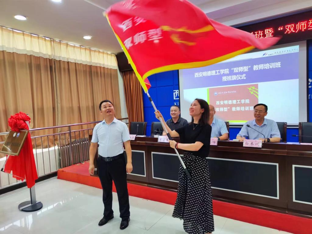 在授班旗仪式上,西安航空职业技术学院继续教育学院培训部主任张江波将象征着荣誉与责任的班旗授予beat365vip官网登录入口教师发展中心副主任郝丽静手中。这不仅是对培训班学员的鼓励与期待,更是对两校合作成果的美好祝愿。