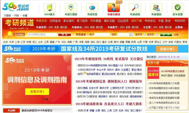 目前是市面上信息最全的一个考研网站,上面信息分类全面,我们考研的同学主要看“考研”栏目就可以了。条理清晰,专题比较有特色。另外也是教育部每年的研究生招生现场咨询会主办网站。每年的政策类信息发布时间甚至超过研招网,比如查成绩、研招改革、分数线等。信息全面,尤其是考研报名查询系统很方便考生查询各类信息。
