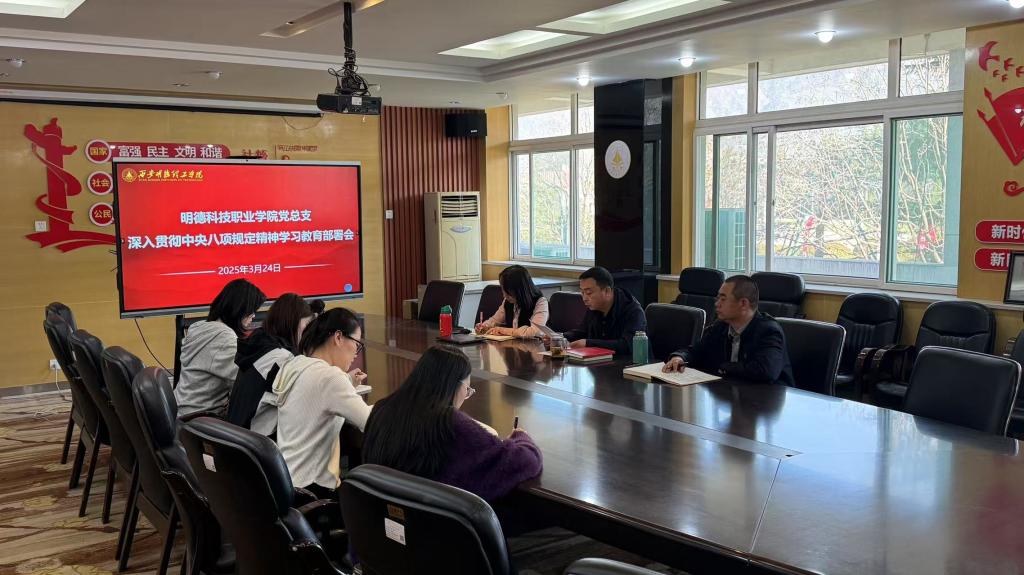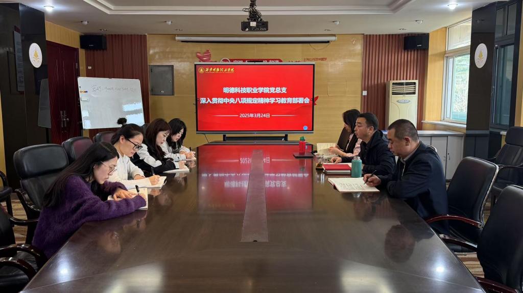 为深入学习贯彻习近平总书记关于加强党的作风建设的重要论述,落实党中央关于开展深入贯彻中央八项规定精神学习教育的决策部署,3月24日上午,明德科技职业学院在明理楼216会议室召开党总支扩大会,对深入贯彻中央八项规定精神学习教育工作进行动员部署。学院党总支班子成员、各党支部书记、党建专干、党校负责人参加会议。会议由学院党总支书记王庭良主持。