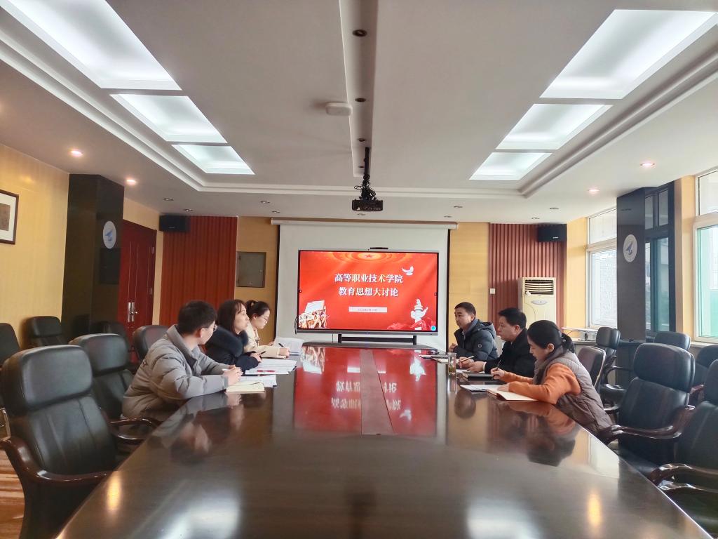 为深入学习贯彻党的二十大精神,切实把全院上下的思想和行动凝聚到党的二十大确立的各项任务上来,2023年2月23日下午,高等职业技术学院在明理楼216会议室召开党总支理论学习中心组扩大会议,开展了教育思想大讨论。学院党总支理论学习中心组成员、党支部书记、办公室主任、团委书记参加会议,会议由高等职业技术学院院长舒忠主持。