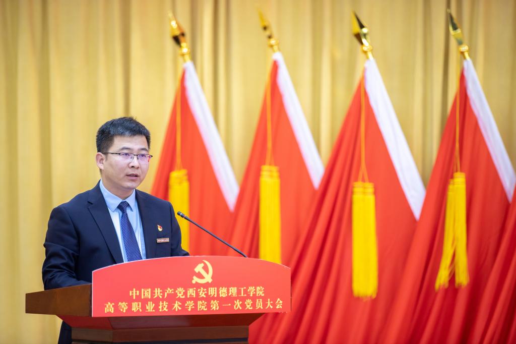 大会在庄严的国歌声中开幕。高等职业技术学院院长舒忠对大会的顺利召开表示热烈的祝贺!他在致辞中回顾了学院自成立以来取得的显著的成绩,。分享了学院未来发展的蓝图构想和面临的新机遇新挑战,号召全院党员要以此次党员大会为新征程,积极作为、踔厉奋发,不忘立德树人初心,牢记为党育人、为国育才使命,同心同力,同向同行,积极推进学院高质量向前发展。