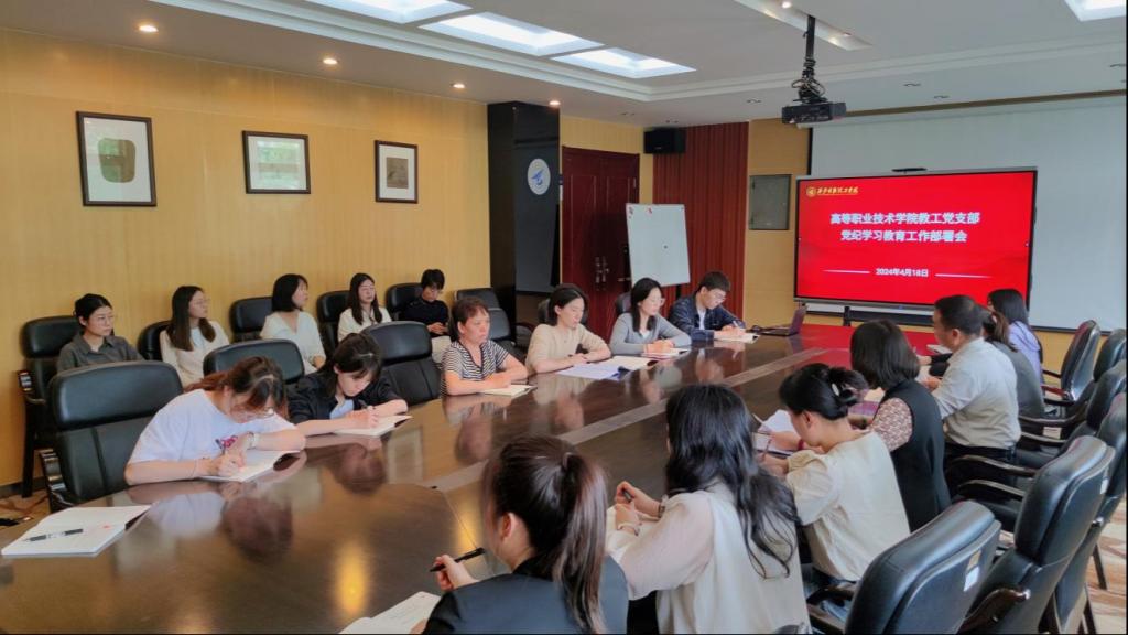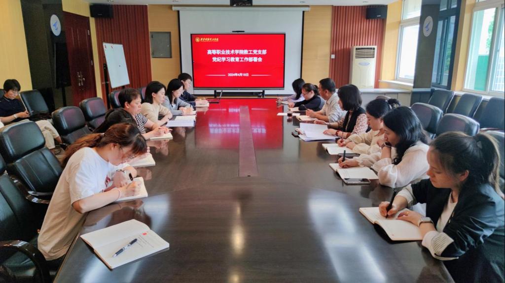 4月18日下午,高等职业技术学院教工党支部在明理楼216会议室召开了党纪学习教育工作部署会。会议由教工党支部书记陆鹤主持,全体教工党员参加了会议。