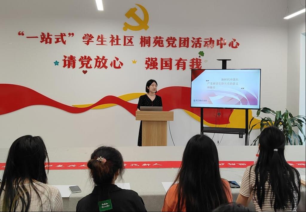 参观完校史馆,毕业生党员前往桐苑党团活动中心,聆听两位老师带来的精彩的党课。李诗言老师以“党群关系的深刻内涵与实践要求”为题,深入浅出地讲解了中国共产党与人民群众之间的紧密联系,以及如何在新时期继续践行党的群众路线。通过生动的讲解和深入的分析,激发大家的使命感和责任感。