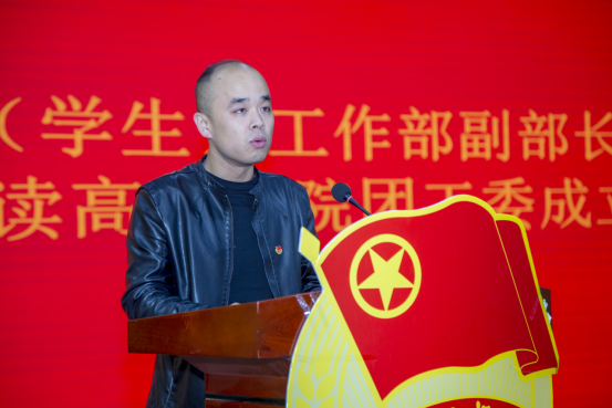 大会伊始,全体起立奏唱团歌。随后党委(学生)工作部副部长童杨梓老师宣读高职学院团工委成立批复。党委(学生)工作部乔建老师宣读高职学院团工委、学生会主要干部名单。最后,由高职学院副院长王君涛发表讲话。