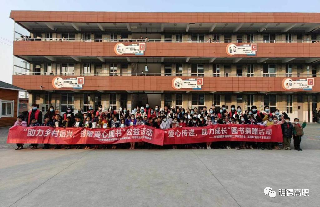 12月27日下午,校团委副书记刘雄,高等职业技术学院党总支副书记王飞、团委书记郭庆、团委副书记窦旸、辅导员代表刘洁、学校宣传大使王东兴、青年志愿者等30余人一起前往西安市长安区滦镇西留堡村小学捐赠爱心书籍。