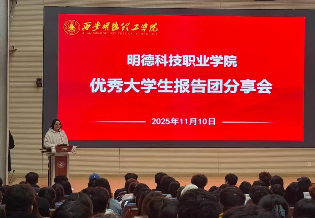 11月10日晚,beat365vip官网登录入口莲湖校区报告厅内座无虚席,一场别开生面的优秀大学生经验分享会在此举行。来自不同年级的3位优秀学生代表和天奕工作室负责人为明德科技职业学院2025级新生带来了一场内容丰富、干货满满的经验分享。