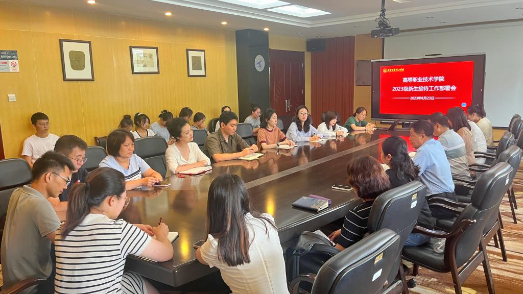 盛夏消隐,金秋遂至,又是一年迎新时,为做好新生接待工作,确保新生入学工作安全、有序、高效地进行,8月23日,高等职业技术学院于明理楼216会议室组织召开2023级新生接待工作部署会,高等职业技术学院全体班子成员、教学管理人员、任课教师以及辅导员老师参与本次会议。