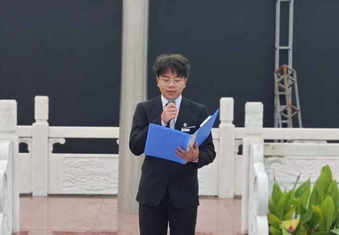 学生代表张希宽同学进行国旗下的演讲。张希宽同学讲到,维护网络安全迫在眉睫、刻不容缓。因此,我们应当避免下载不正规软件,以免遭受黑客攻未导致信息泄露;不扫来历不明的二维码,不轻易透露个人信绿色安全上网,加强网络安全防范意识等。