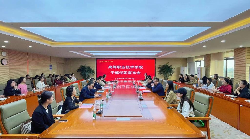 2023年10月10日上午,高等职业技术学院在明志楼518召开干部任职宣布会,学校副校长刘星、人力资源处处长白秦川出席会议并讲话。高等职业技术学院全体领导班子及在校教职工参加了本次会议,会议由高等职业技术学院党总支书记王庭良主持。