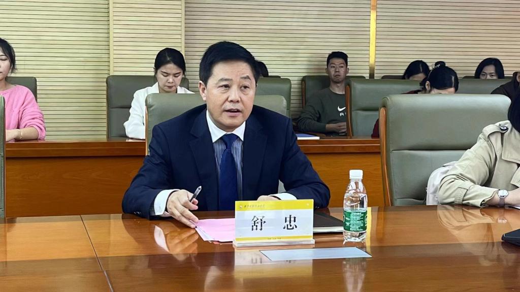 舒忠院长代表高等职业技术学院全体教职工向学校表示感谢,对王飞同志到高等职业技术学院任职表示欢迎,希望王飞同志能够在工作中发挥经验优势,出彩地完成各项工作,推动学院建设向更高的层次迈进。同时,也要求王飞同志接受全院监督,践行工作职责。