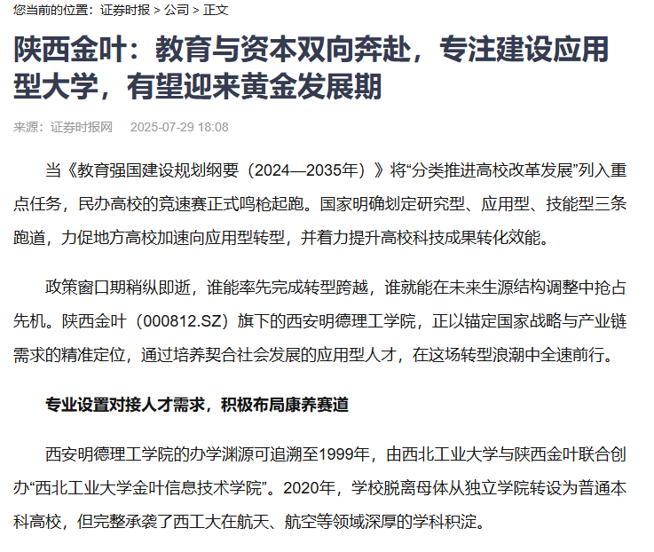高校转型从来不是教育部门的独角戏,资本、产业、政策的共振才能放大乘数效应。在陕西金叶涵盖教育事业、烟草配套产业、医养产业的商业版图中,教育事业是具有长期成长性的业务。