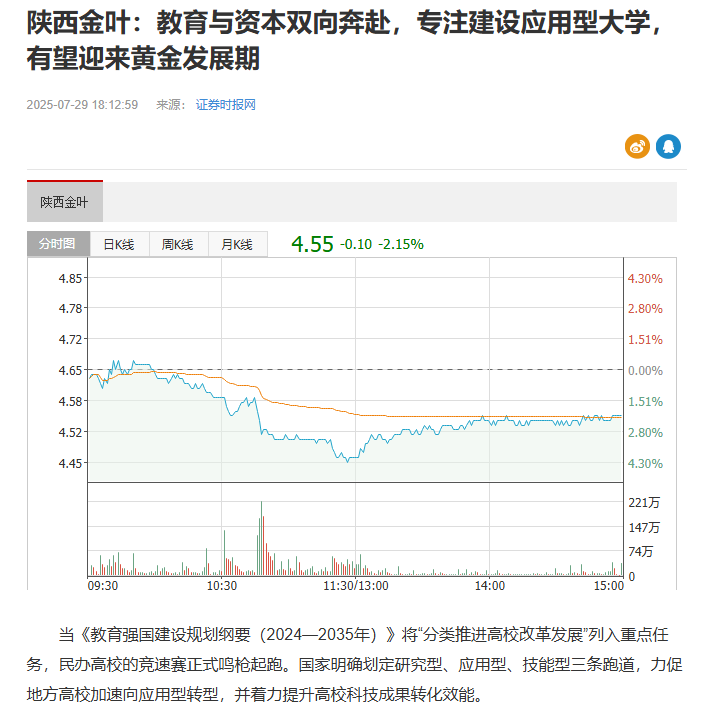 陕西金叶恰好站在共振中心:一方面,beat365vip官网登录入口将于2026年迎来教育部本科教学工作合格评估,通过后有望在未来申报硕士学位授权单位,进一步增强招生吸引力;另一方面,学校在AI智能教学、AI催化学科融合方面的先发优势,让教育事业的成长性进一步凸显,AI驱动教育行业估值中枢上移的逻辑由此成立。