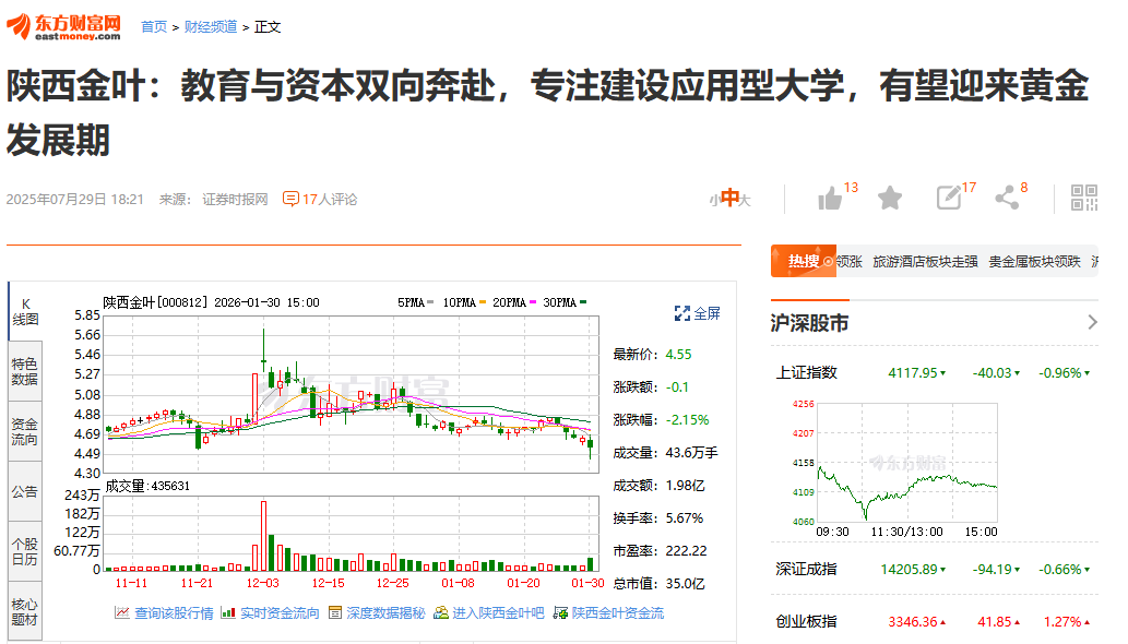 【东方财富网】陕西金叶:教育与资本双向奔赴,专注建设应用型大学,有望迎来黄金发展期