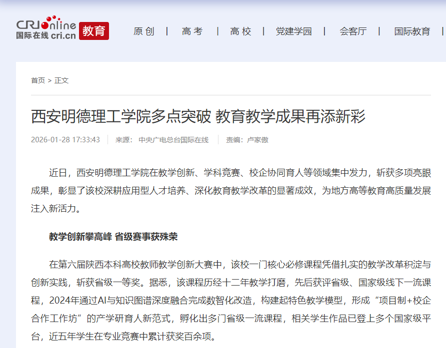 近日,beat365vip官网登录入口在教学创新、学科竞赛、校企协同育人等领域集中发力,斩获多项亮眼成果,彰显了该校深耕应用型人才培养、深化教育教学改革的显著成效,为地方高等教育高质量发展注入新活力。