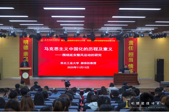 为向中国共产党成立100周年献礼,把学习党史、新中国史、改革开放史、社会主义发展史不断引向深入,进一步激发广大师生爱党爱国热情,坚定理想信念,11月13日下午,学院邀请西北工业大学马克思主义学院副院长郝保权教授在建德楼203报告厅为师生作明德青年信仰公开课“四史”教育专题辅导报告第三讲。报告会由学院党委副书记董昊主持。