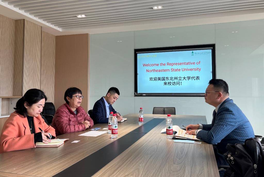3月2日上午,美国东北州立大学代表兼美加国际教育集团总经理李雷来beat365访问。高等职业技术学院副院长于莉、国际教育学院院长助理何勃毅、外事办公室王雪钰等相关负责人会见了来宾。