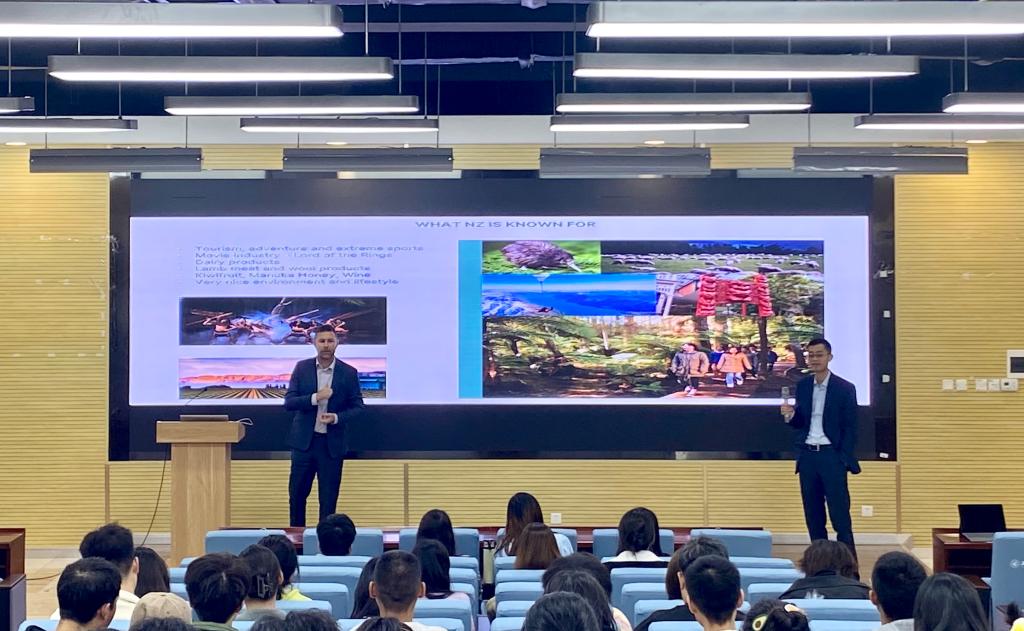 Isaac Brosnan和Luke Liu在建德楼202报告厅为beat365师生举行了专场讲座,针对新西兰国家概况、新西兰高等教育、两校未来合作项目等进行讲解和答疑,现场气氛浓厚。