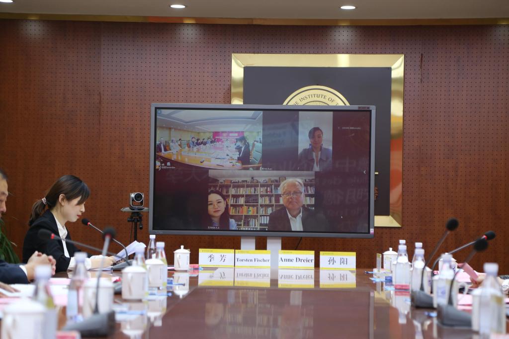 在热烈的掌声中,杨健君校长与FHM副校长Torsten Fischer教授在视频会议中签署了中德合作办学及国际交流框架协议。