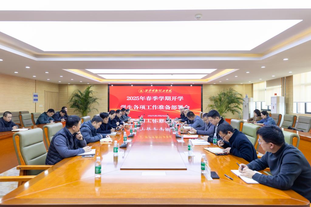 会上,学校办公室传达了上级教育主管单位和学校2025年春季学期学生开学相关通知与文件精神。相关职能部门和二级学院就学生返校、思想政治教育工作、资助育人、学生安全教育、心理健康教育、行为规范教育、后勤保障等工作进行了沟通交流。