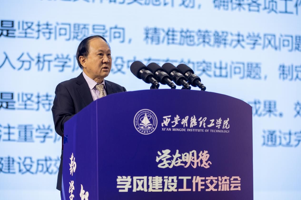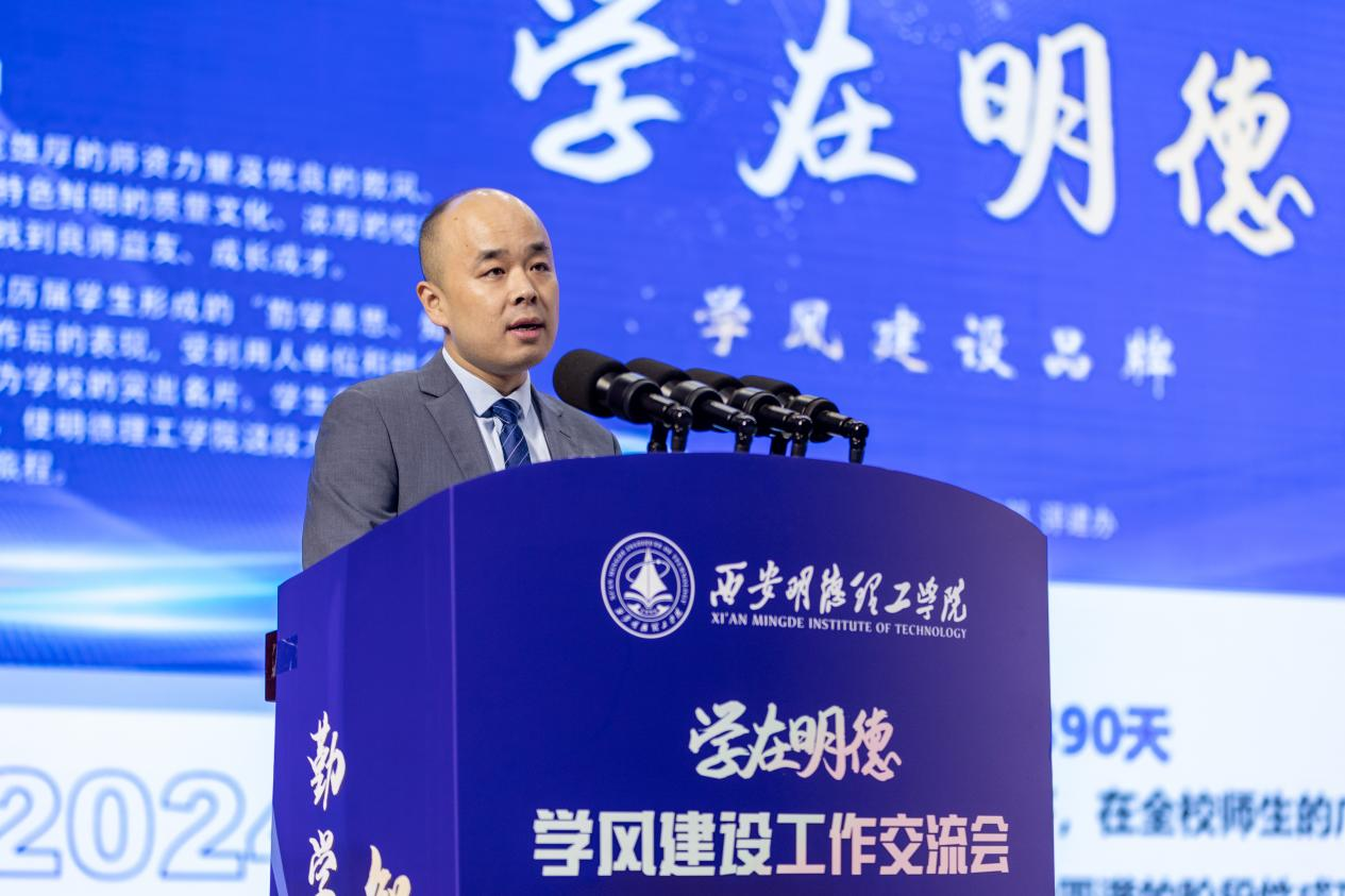 学校校长王志刚对前期“学在明德”学风品牌建设工作所取得的阶段性成果表示肯定,对通过努力取得优异成绩的学生表示祝贺,对辛勤培养学生健康成长的老师和为学生创造良好学习环境的教职工表示衷心的感谢。会上,他作了题为《精心打造“学在明德”学风建设品牌,不断提高学风建设水平和人才培养质量》的主题讲话,阐述了学风建设的重要意义,总结了近年来学风建设取得的成效,介绍了学风建设的体会与启示,提出了精心打造“学在明德”学风建设品牌的几点希望和要求。他强调,近年来学校学风建设的思路、措施和成效为学校不断提高学风建设水平和人才培养质量积累了经验,奠定了良好基础,形成了三个方面的体会与启示:一是坚持前瞻性思考,构建“全方位”的学风建设工作体系;二是坚持全局性谋划,打造“全员”参与的学风建设格局;三是坚持整体性推进,汇聚“全过程”的学风建设工作力量。他指出,精心打造“学在明德”学风建设品牌,需要统筹兼顾、系统谋划、整体推进,正确处理好顶层设计与实践探索的关系,并针对性提出以下四点希望和要求:一是要深刻认识学风建设的重要性;二是要充分发挥学生在学风建设中的主体作用;三是要充分发挥教师在学风建设中的主导作用;四是加强学风建设要与时俱进,务求实效。