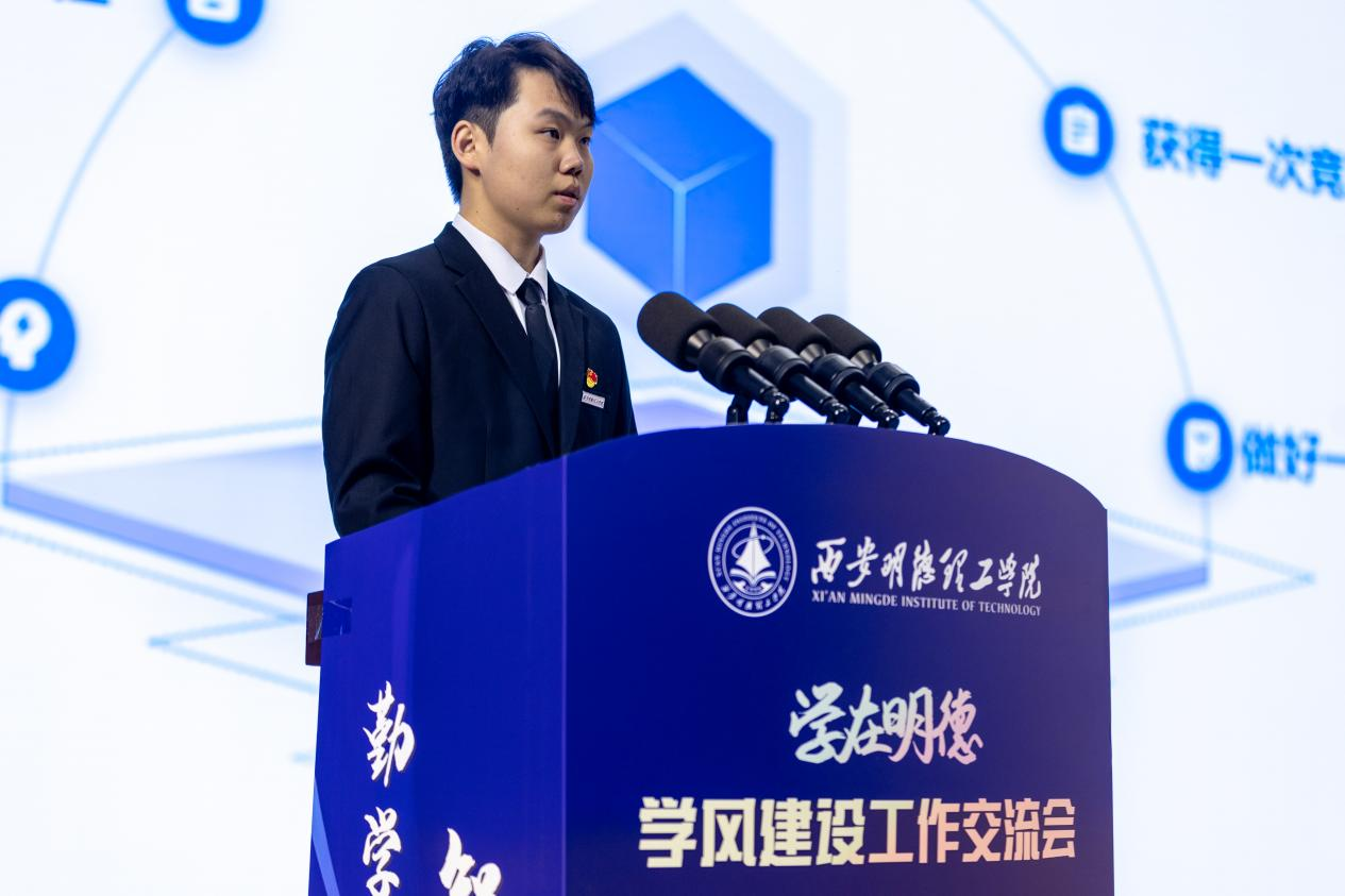 智能制造与控制技术学院学生代表余国栋作学风建设经验交流发言
