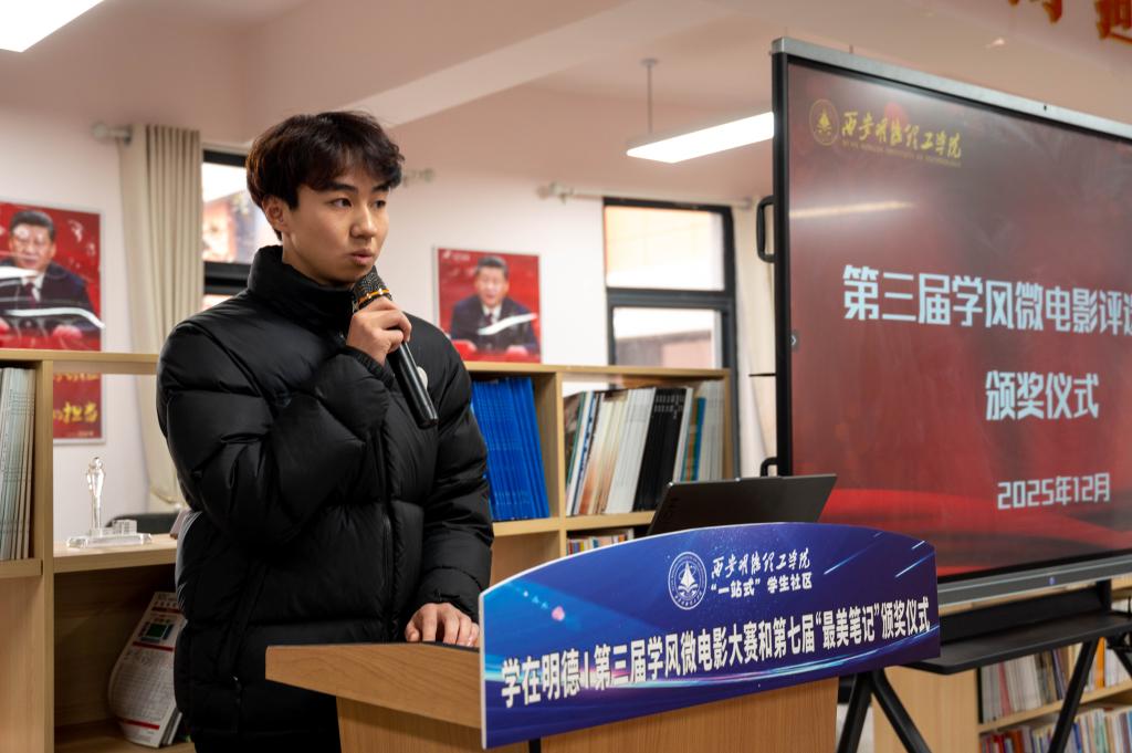 为持续深化学校优良学风建设,进一步打造“学在明德”特色品牌,营造积极向上、创意涌动的校园学习氛围,12月3日,党委学生工作部在梅苑“一站式”学生社区成功举办“学在明德”学风建设系列活动颁奖仪式,对第七届“最美笔记”与第三届学风微电影大赛的获奖师生进行表彰。党委学生工作部、各学院学生工作负责人以及获奖师生参加了颁奖仪式。