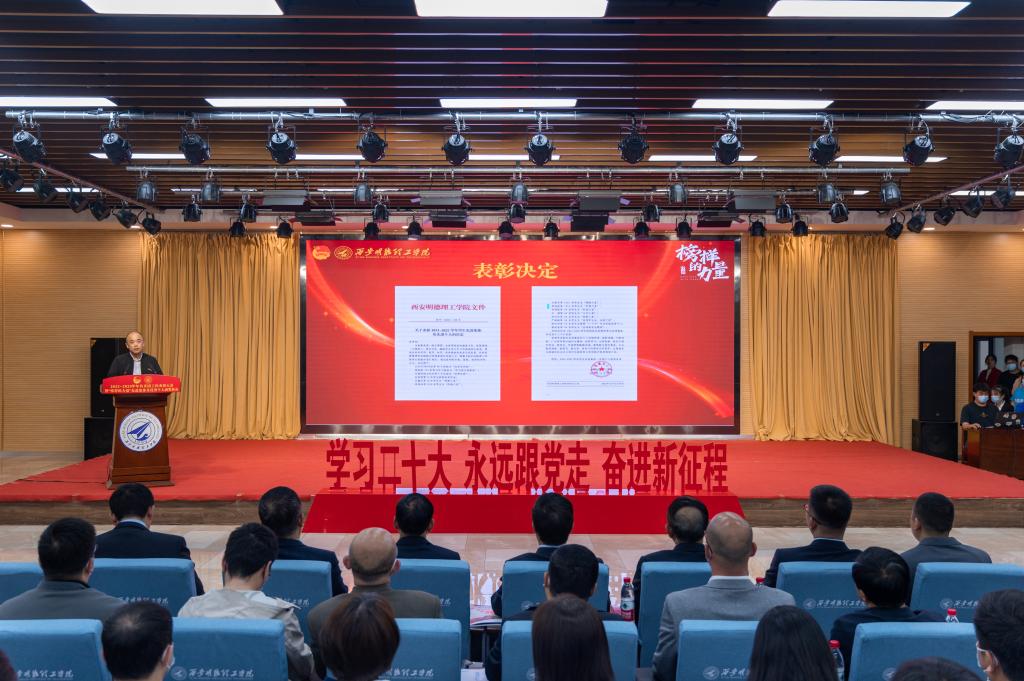 学校领导为“国家奖学金”、“五四红旗团委”、“共青团工作先进单位”、“学科竞赛指导教师”、“明德之星”、“终南之星”、“优秀共青团干部标兵”、“优秀学生会干部标兵”、“优秀青年志愿者”、“新媒体先进工作者”、“优良学风班”、“学习型文明宿舍”、“优秀社团”等优秀个人和先进集体代表颁发了奖牌和证书。