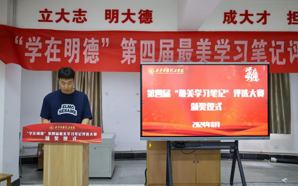 颁奖仪式上,党委学生工作部花芸对获奖同学表示衷心的祝贺,并希望同学们以记学习笔记促学习习惯,提高学习效率,保持优良学风,更好的带动身边同学共同进步。获奖学生代表信息工程学院王宣朝,跟同学们分享了自己的学习心得,每一次记录学习笔记都是他对知识的理解和构建,是对问题的思考与探索,在记笔记的过程中,也深刻体会到知识的绚烂和智慧的魅力。随后颁奖嘉宾对获奖同学颁发了荣誉证书和奖品。
