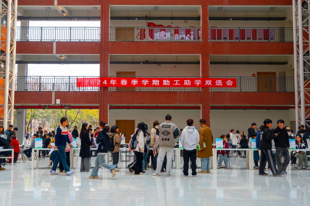 为贯彻落实国家资助政策,引导和鼓励家庭经济困难学生积极参与勤工助学活动,培养学生自立自强奋斗精神,3月14日中午,学校在明志楼中厅举办了2024年春季学期勤工助学岗招聘双选会。