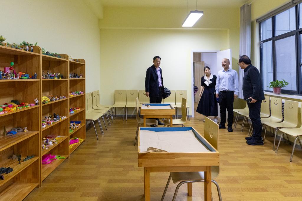 在实地考察环节,专家组分别对大学生心理健康教育中心功能室、二级学院心理辅导站以及一站式学生社区等场地进行了走访考察。