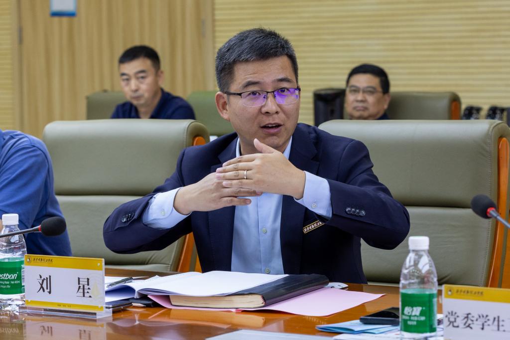 刘星代表学校首先对专家组的莅临表示热烈欢迎,随后对学校的总体概况进行了简要介绍,最后对大学生心理健康教育工作的顶层设计、理念思路以及成效亮点等情况进行了重点突出的汇报。